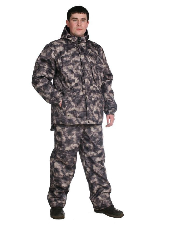 Новая модель для охоты и рыбалки. Куртка прямого силуэта, с воротником - стойкой, с центральной бортовой застёжкой на молнию. Ветрозащитным клапан Рукава втачные из двух частей, с манжетами, собранными на резинку. Капюшон втачной, по лицевому вырезу стягивается шнуром. По линии талии настрочена кулиска, с регулирующим шнуром и фиксаторами. Брюки с гульфом на молнии, притачном поясе со шлёвками, собранном на резинку. На передних половинках обработаны два кармана