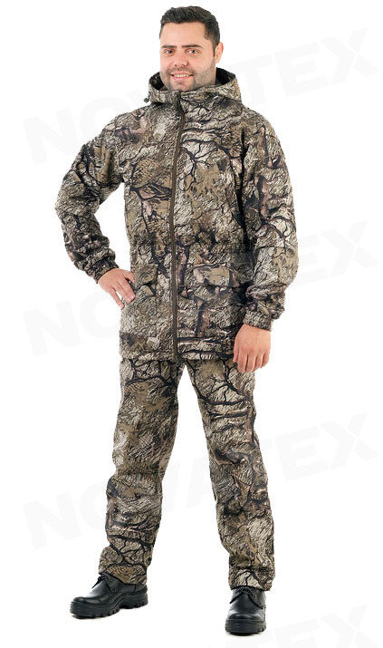 Представляет собой классический «лесной» костюм, сконструированный на основе современных ветро-влагозащитных тканей. Ткань полофлис обладает хорошей ветрозащитой, практически не впитывает влагу, быстро сохнет, не вызывает аллергии. Удлиненная куртка оснащена кулисой по талии с внутренней стороны для более надежной снего- и ветрозащиты. Молния в куртке двухзамковая, ветрозащитная планка внутренняя. Манжеты рукавов и пояс брюк собраны на широкую простроченную резинку. Капюшон регулируется по овалу лица. На куртке два верхних прорезных с листочками и два нижних накладных кармана с клапанами на кнопках. Брюки по низу регулируются утяжками. Пояс брюк со шлевками, регулируется шнурками. Регулировка талии Рекомендован для туристов, охотников и всех любителей активного отдыха на природе. Температура комфорта +10 градусов Температура экстрим 0 градусов Регулировка талии