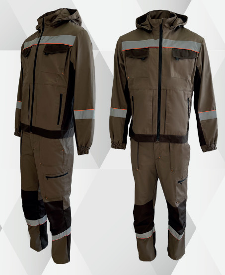 Костюм летний БЕРГЕН куртка, брюки цв. бежевый, т. коричневый Эталон