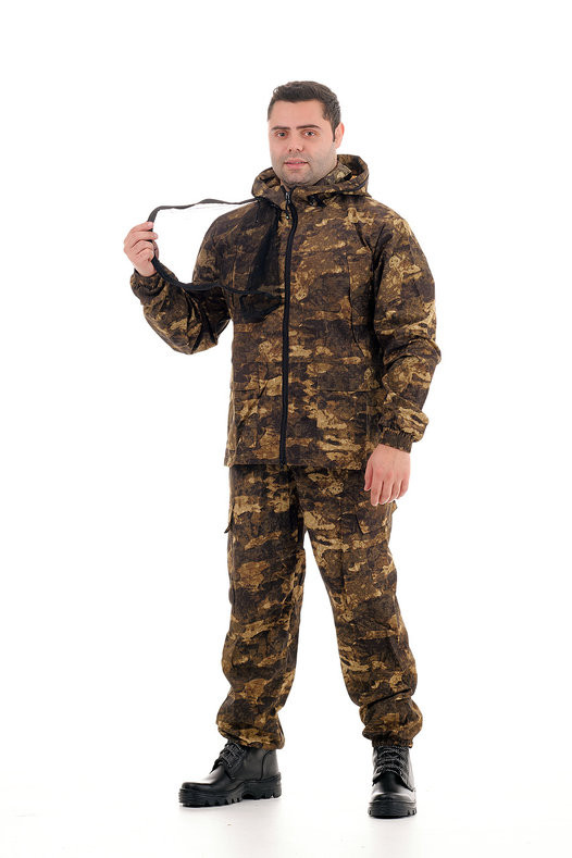 Костюм «Лесовик» это легкий и надежный антимоскитный костюм. Удобный и функциональный прекрасно подойдет для всех любителей активного образа жизни. Состоит из длинной куртки с капюшоном и прямых брюк, низ брюк собран на резинку. Рукава куртки с трикотажными манжетами плотно облегают руки и препятствуют проникновению насекомых. Капюшон оснащен съемной антимоскитной сеткой. Легкая смесовая ткань делает этот костюм практичным и удобным в эксплуатации.