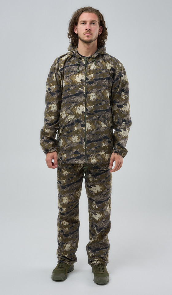 Брюки свободного кроя с поясом на резинке.Материал: смесовая ткань (65% хлопка, 35 % полиэстера) устойчивая к разрывам, обладает водоотталкивающими свойствами, «дышит» и не «шуршит».Комфортная температура от +10 до +25 градусов Цельсия.