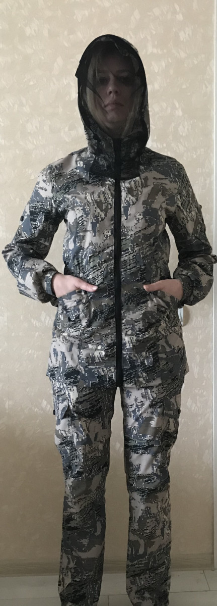 Костюм летний женский "Амазонка" выполнен из ткани - 100% хлопка. Куртка на молнии, приталенного кроя с эластичными вставками по бокам для более плотного прилегания к талии. На куртке имеется 2 кармана. Капюшон, низ куртки и низ брюк регулируется резинкой с фиксаторами. Манжеты на рукавах и пояс брюк на резинке.