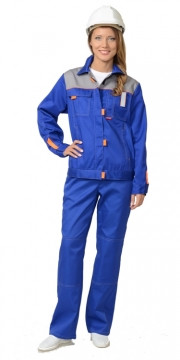 Костюм летний женский Фаворит куртка, брюки васильковый со светло-серым