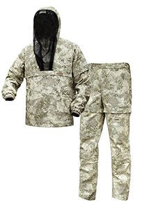Защита от насекомых благодаря противомоскитной сетке и складкам-ловушкам на куртке и брюках.