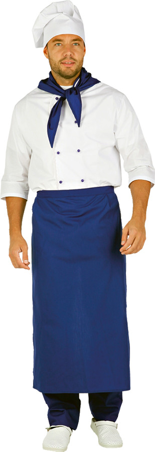 Цвет: белый с васильковой отделкой Ткань: «Тиси» Состав: 65% полиэфир, 35% хлопок, пл. 120 г/м² Комплект состоит из: куртки, брюк, фартука, колпака и шейного платка. Куртка: • двубортная застёжка на петли и пукли • воротник - стойка • короткий рукав • контрастный кант Брюки: • прямые по всей длине • пояс с эластичной лентой Фартук: • на завязках