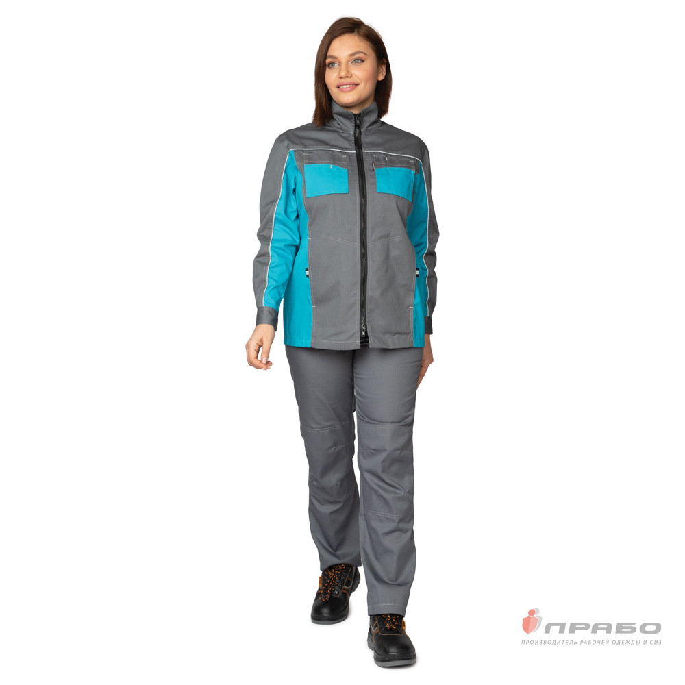 Костюм женский Бренд 1 2020 с удл.курткой серый/бирюза
