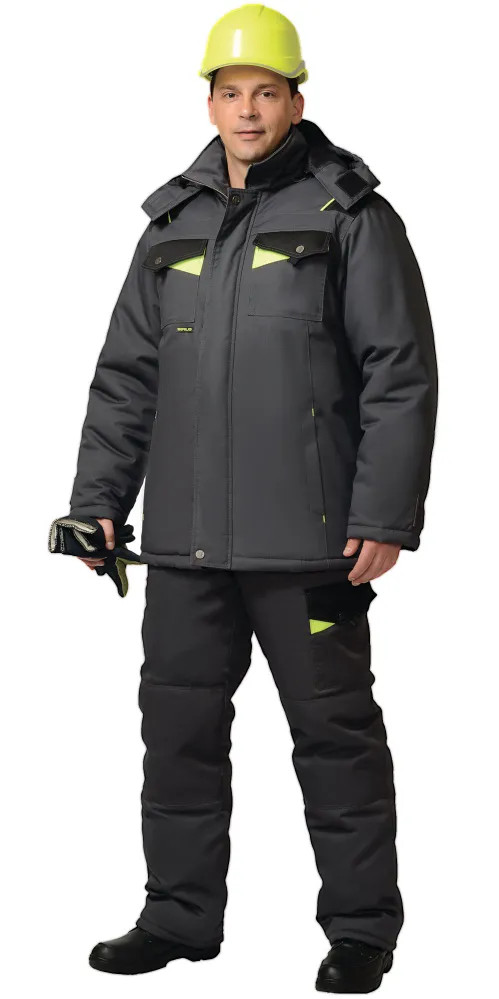 Костюм зимний ХОВАРД/КОРВЕТ куртка длинная, брюки темно-серый/черный/лимон тк.смесовка СОП