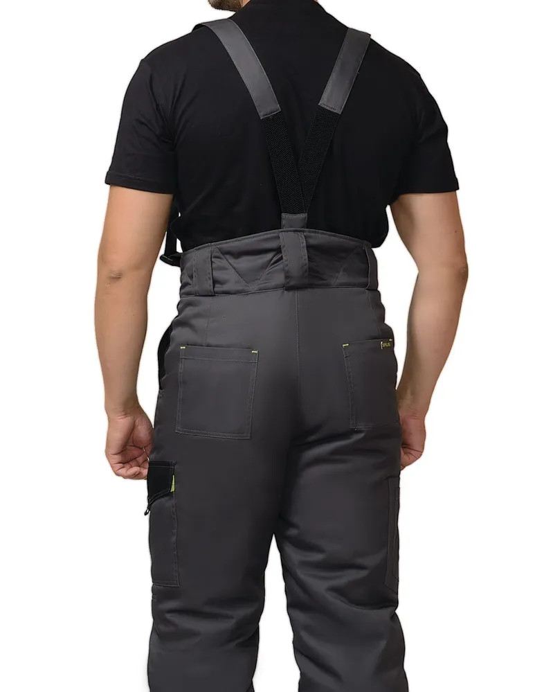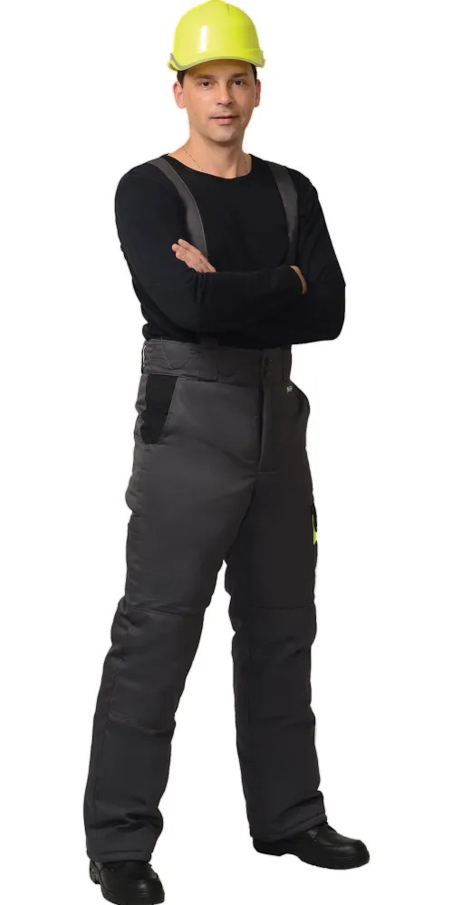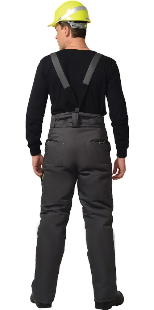 Куртка прямого силуэта, длинная, с притачной утепленной подкладкой, воротник стойка, с пристегивающимся утепленными капюшоном, с центральной застежкой на металлическую тесьму-«молнию» накрытую ветрозащитным клапаном, застегивающимся на кнопки и липучки, с верхними фигурными карманами и нижними карманами в швах, регулировкой рукавов при помощи хлястиков. Брюки прямого покроя с притачной утепленной подкладкой, с застежкой гульфика на тесьму "молния", притачным фигурным поясом, застегивающимся на пуговицы, широкими шлевками и пристегивающимися бретелями, внутренними боковыми карманами, наколенниками, накладным карманом на боком шве с клапаном на кнопке, с различными задними карманами. Ткань верха "Rodos" 65% п/э, 35 % х/б, пл. 245 г/кв.м. Утеплитель: «Термофилл» в куртке 450 гр/кв.м. брюки 300 гр/кв.м. Подкладка: 100% п/э.