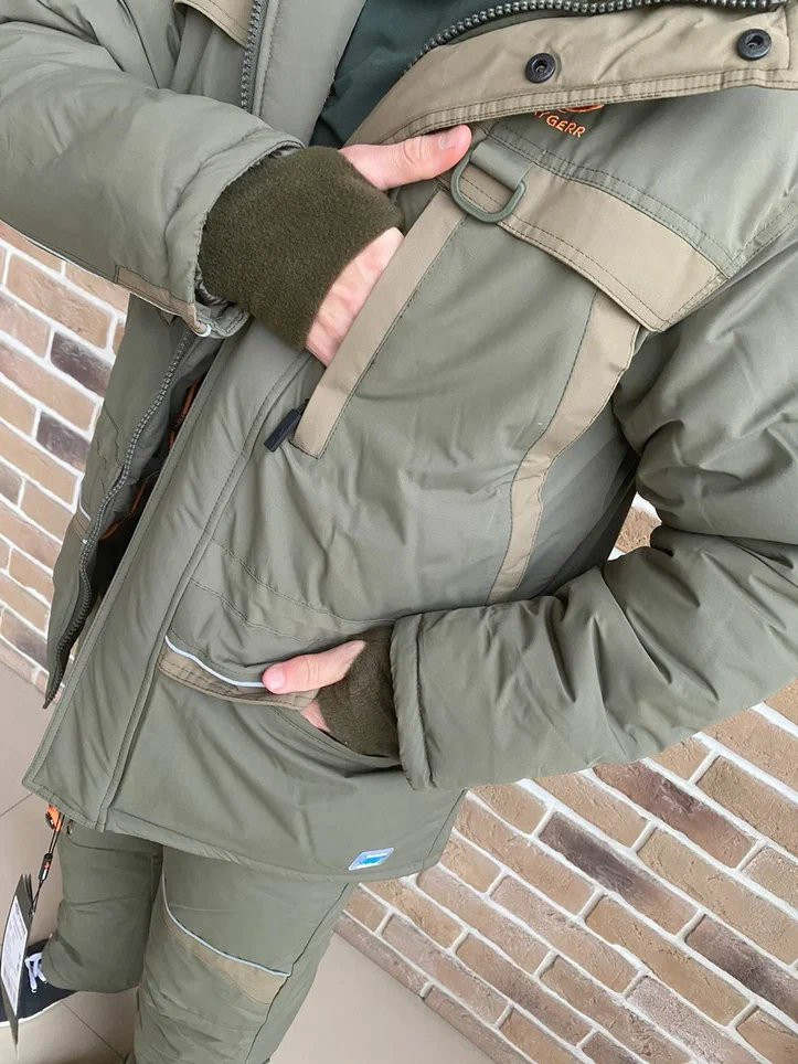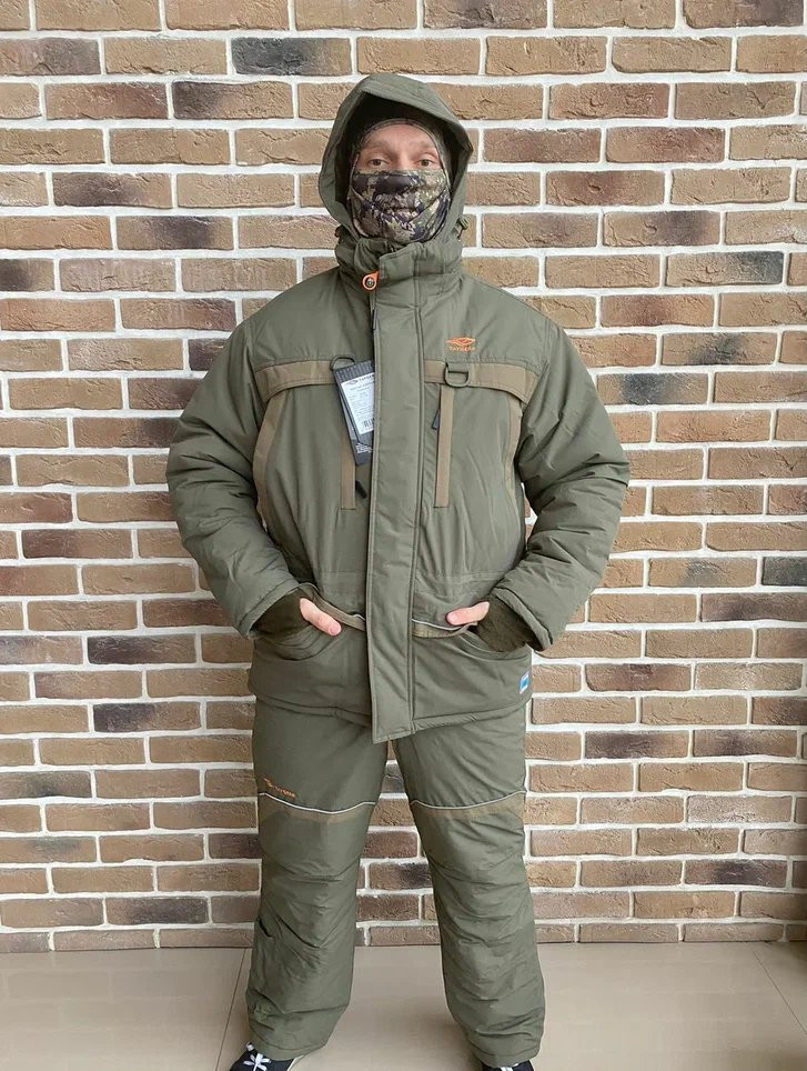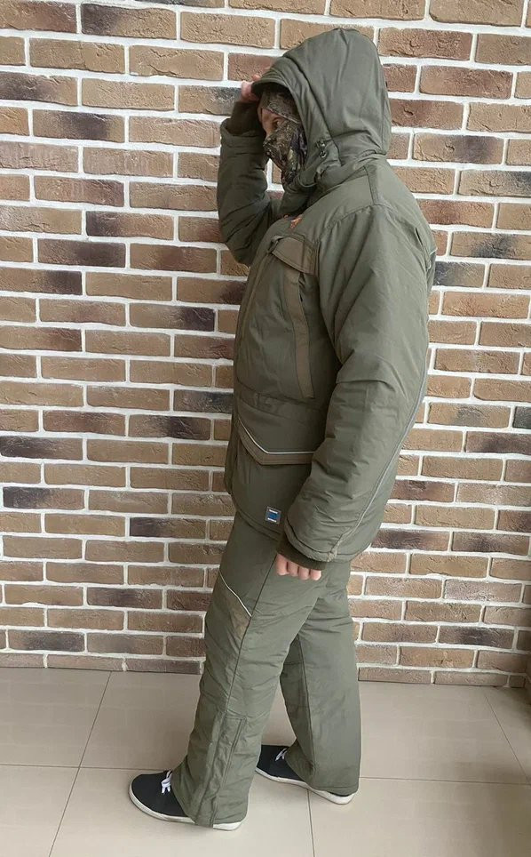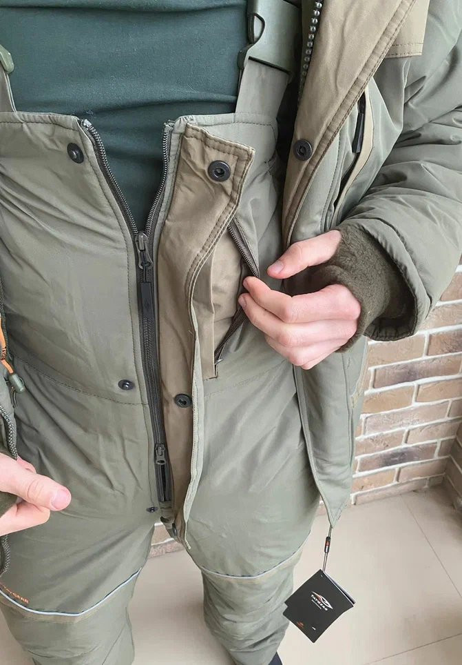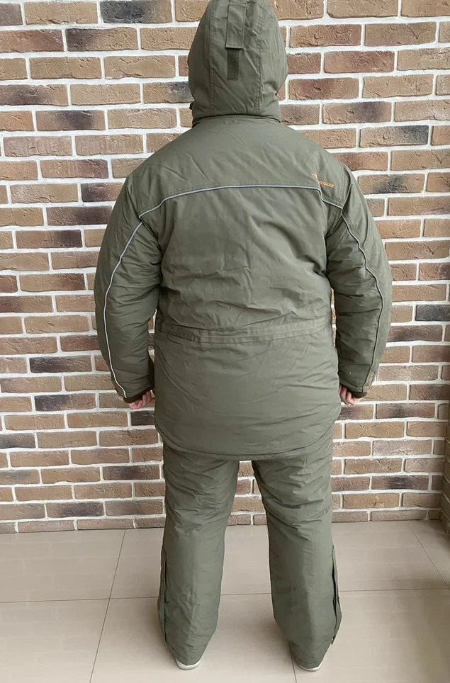 Куртка: Прямая удлинённая с утяжкой внизу. Спина удлинена. Капюшон отстежной с регулировкой в двух плоскостях. Двух-замковая усиленная молния с ветрозащитной планкой на клепках. Четыре врезных кармана на молнии нижние дополнительно под клапаном, один внутренний на молнии, один карман на молнии под ветрозащитной планкой. Брюки: Высокий полукомбинезон с регулируемыми бретельками на фастексах. Ширинка на молнии с ветразащитной планкой на липучках. Два накладных кармана, один нагрудный на молнии, расширение под сапоги с противосугробным манжетом.