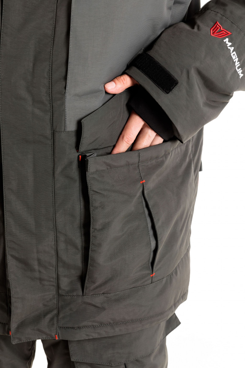 Дизайн костюма Magnum Titan -45 выполнен с учетом комфорта и практичности. Он имеет свободную посадку, регулируемые манжеты и капюшон, что обеспечивает удобство и свободу движений во время активного отдыха на природе. Кроме того, костюм оснащен множеством функциональных карманов для удобного хранения снастей, электроники или других необходимых вещей. Также Titan имеет анатомические 3D наколенники из материала EVA и неопреновую вставку в зоне сидения для дополнительной защиты от холода.