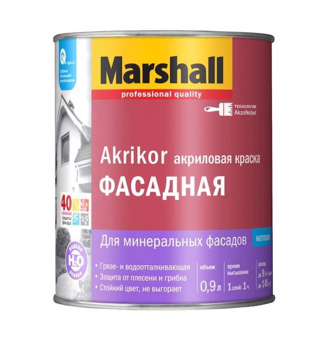 Краска Marshall AKRIKOR Фасадная силикон-акриловая мат BW 0,9л
