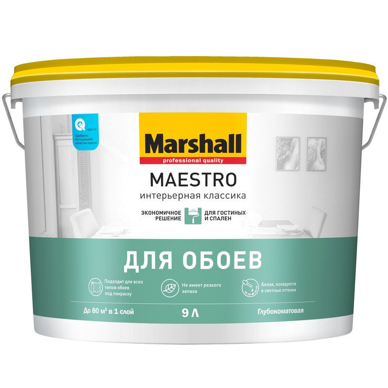 Краска Marshall MAESTRO Интерьерная классика для обоев белая BW 9л