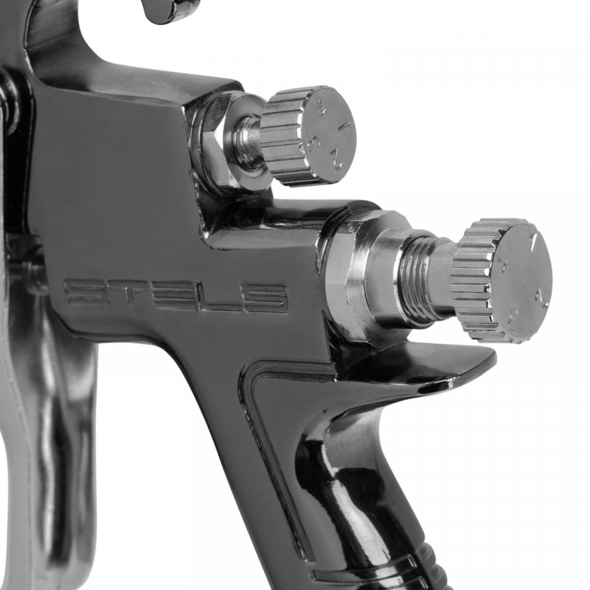- Легкая подготовка — регуляторы давления воздуха, количества подаваемой краски и хода иглы с понятными насечками позволяют быстро настроить размер факела и добиться идеального результата.