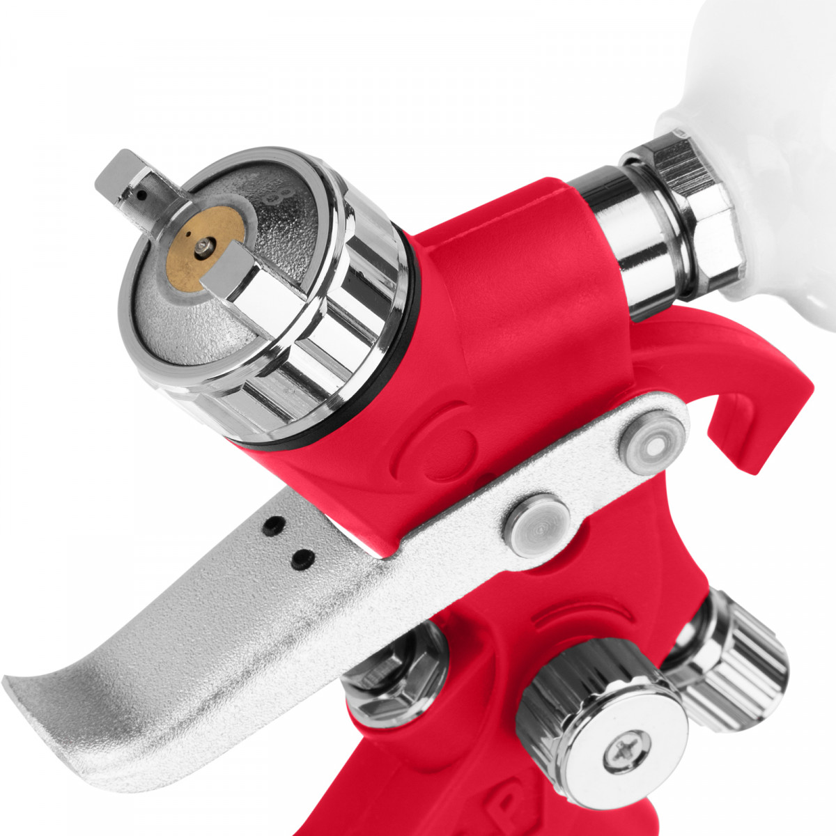 • Верхнее расположение бака — краскопульт удобно заправлять, лакокрасочный материал расходуется полностью.