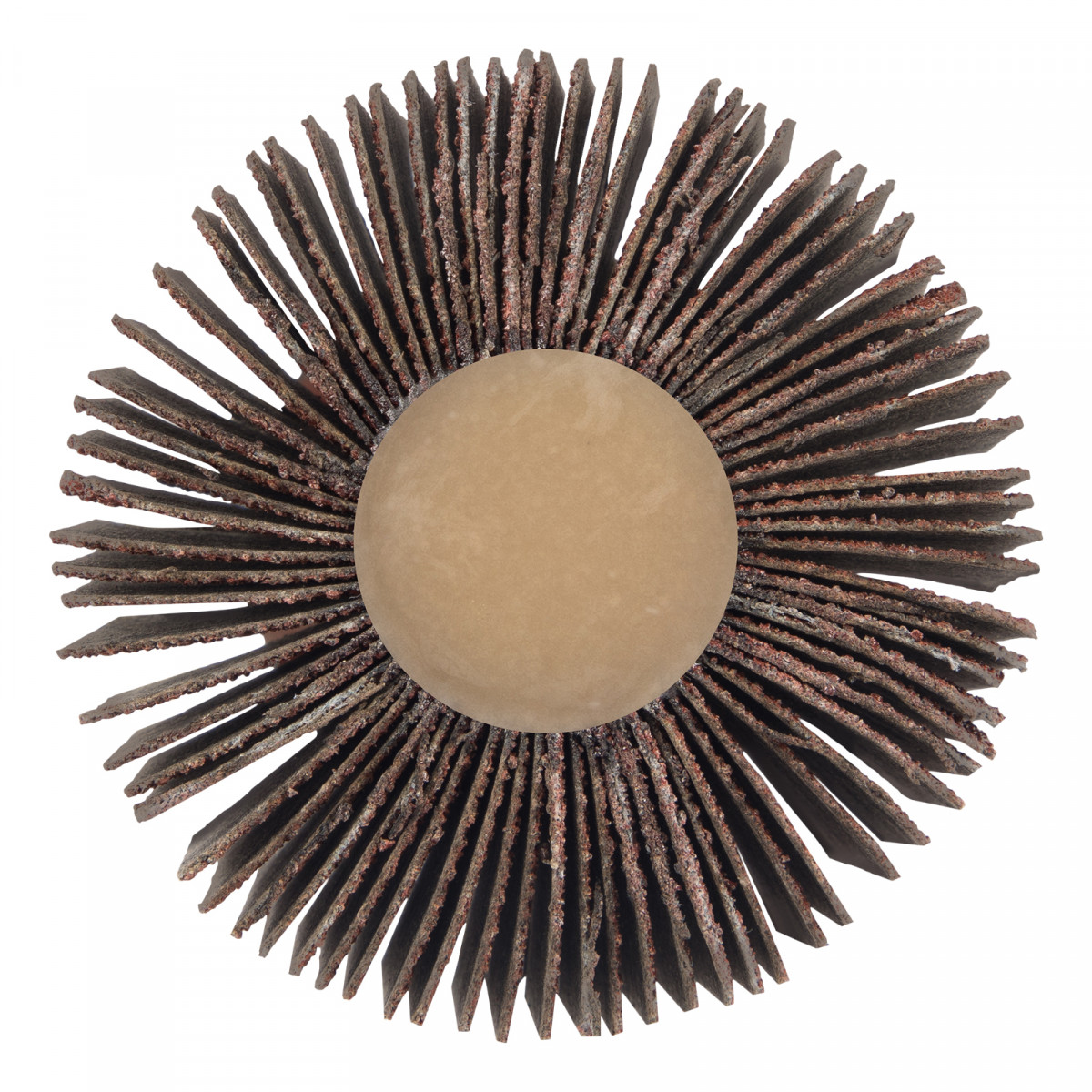 • Надежность — лепестки из прочной х/б ткани прикреплены к оправке при помощи бакелитовой смолы, поэтому круг устойчив к трению и давлению.