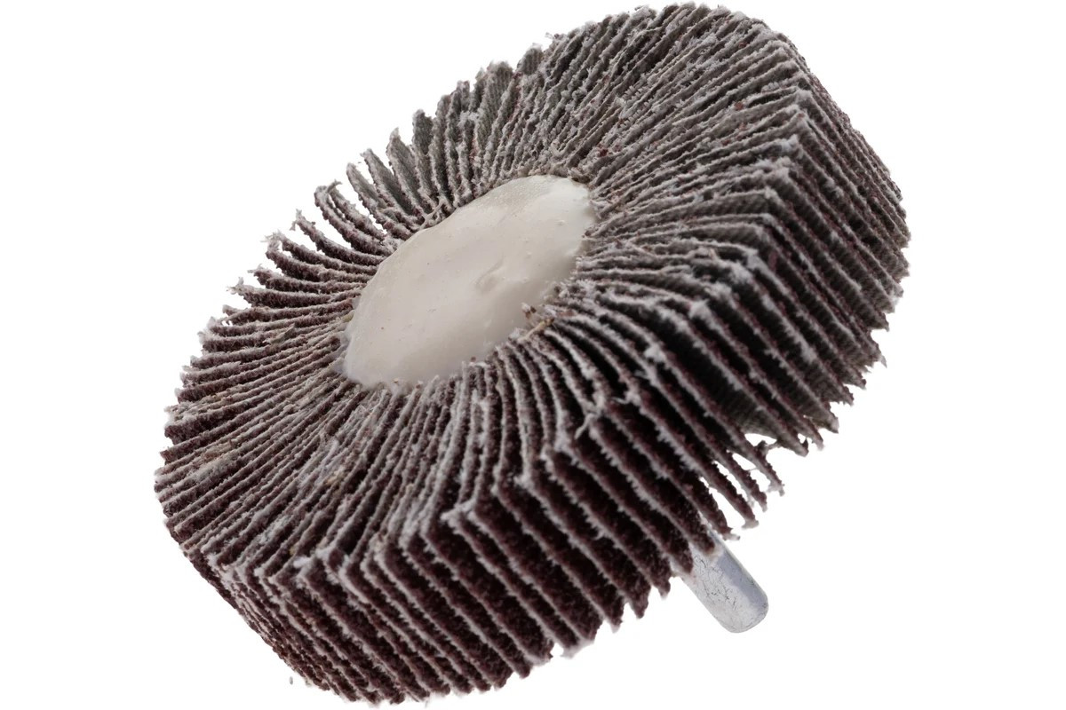 Состоит из лепестков тканевой шлифовальной шкурки (оксид алюминия), которые расположены в виде веера вокруг металлического штыря.