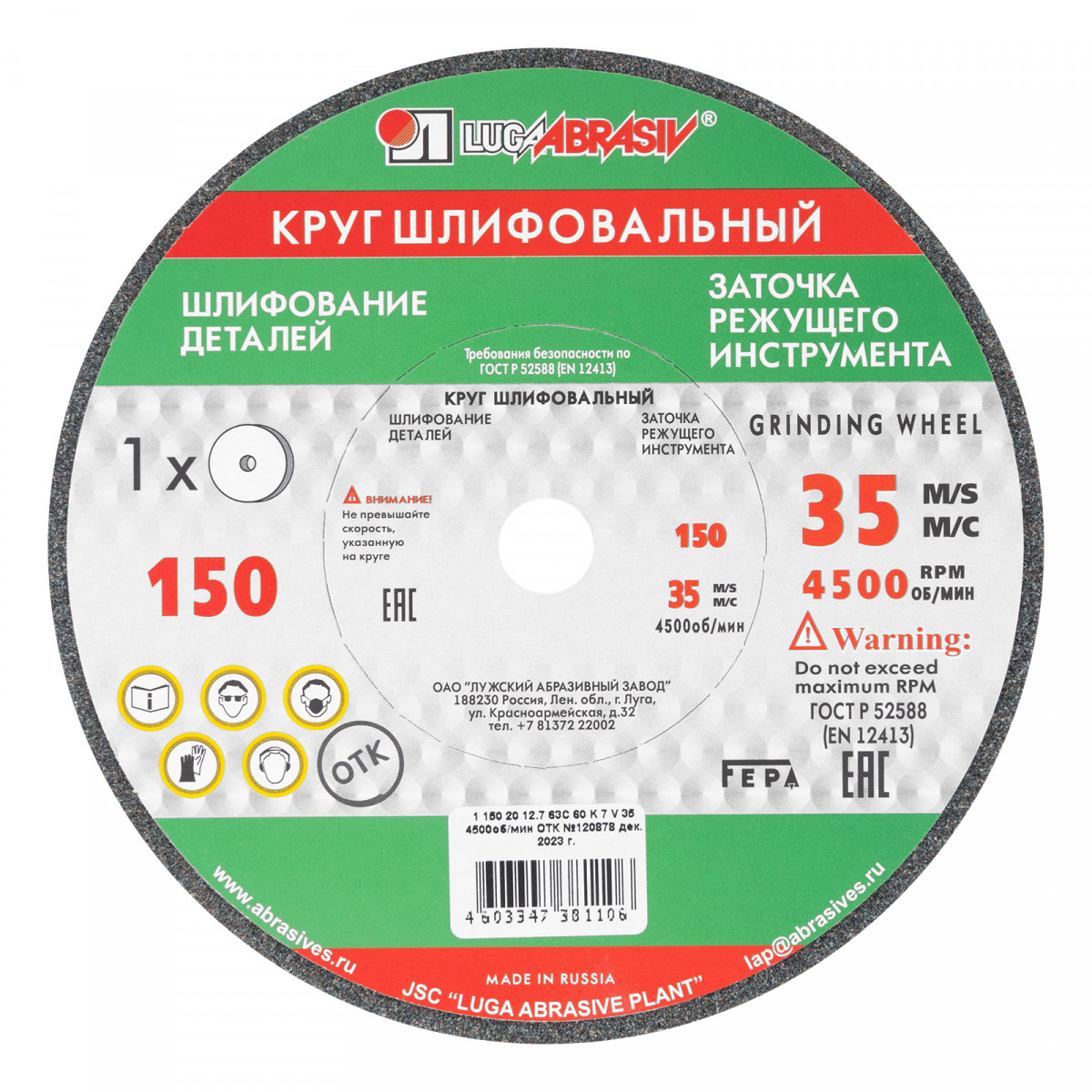 Круг шлифовальный, 150 х 20 х 12.7 мм, 63С, F60, (K, L) "Луга"