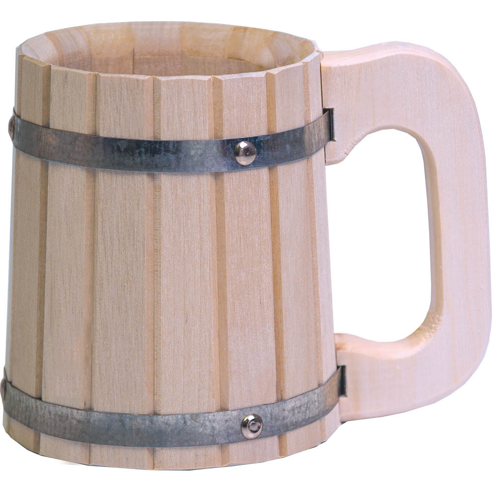 Кружка – неотъемлемый аксессуар настоящей бани. Бондарная кружка имеет объем 0,5 литра и выполнена в светлых деревянных тонах. Это обеспечивает не только функциональность изделия, но отличный эстетический вид.