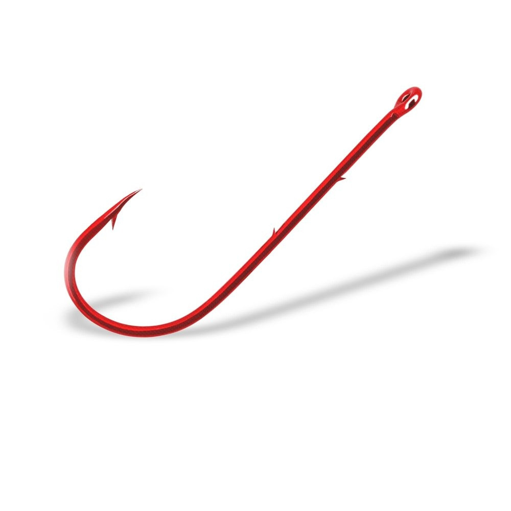 Практически идеальная модель для ловли на животные приманки с узким длинным телом (червь, выползок, пиявка и т.д.). Дополнительные зазубрины на цевье предотвращают сползание и скручивание приманки. Короткое, слегка загнутое жало надежно фиксирует трофей. крючок может использоваться и в спининговой ловле на отводной поводок. Имеет высококачественное антикоррозийное покрытие. Представлен в красном цвете.