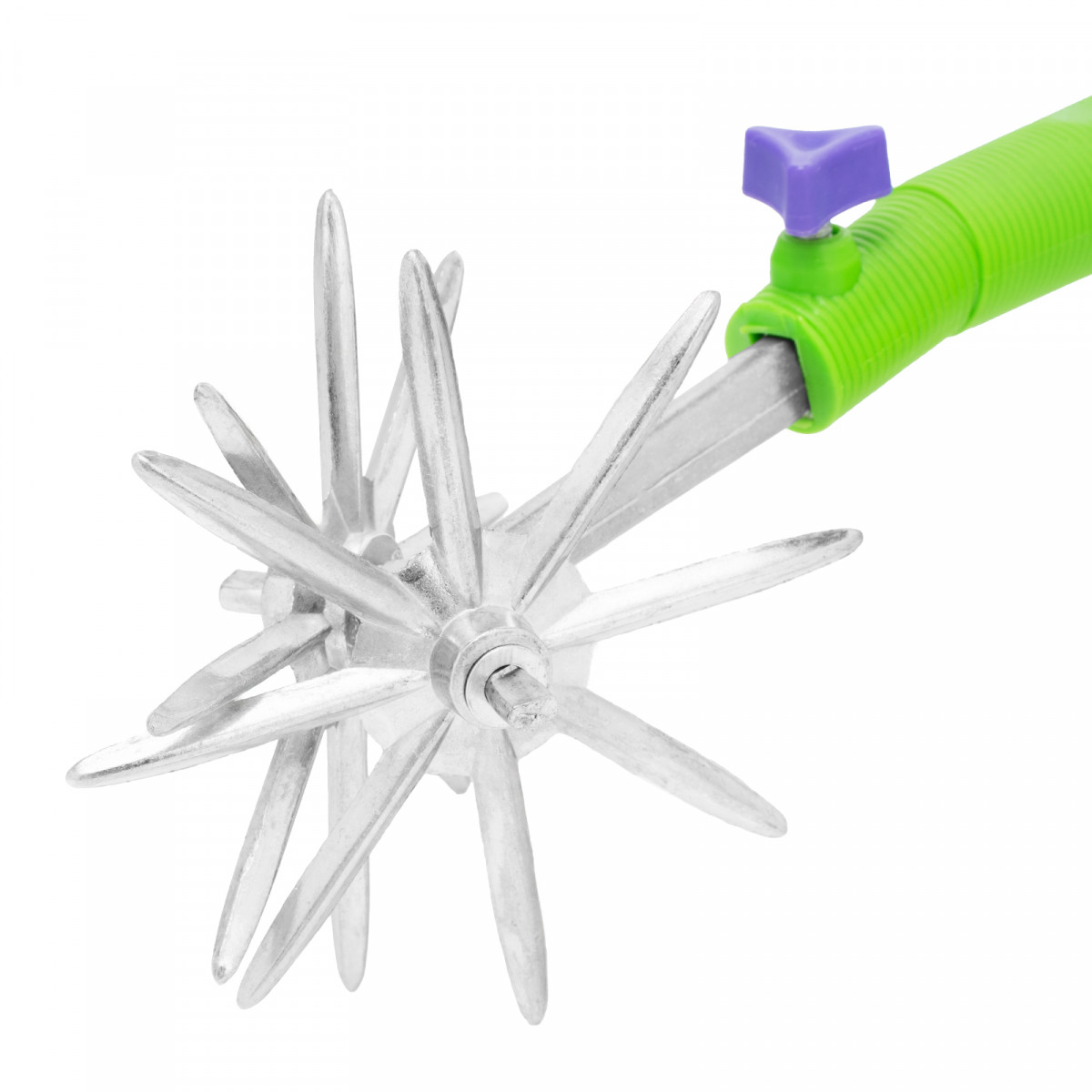 - Съемная рукоятка позволяет с удобством рыхлить грунт на небольших участках одной парой колес.