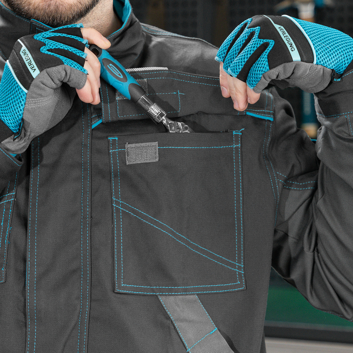 Профессиональная рабочая куртка Gross 90432 размера M защищает пользователя от общих производственных загрязнений, нетоксичной пыли, ветра и незначительных механических воздействий. Рассчитана на рост 172-178 см и предназначена для использования в теплое время года или в отапливаемом помещении. Куртка изготовлена из ткани с 97-процентным содержанием хлопка и 3-процентным содержанием спандекса. За счет наличия хлопковых волокон в составе ткань прекрасно пропускает воздух и приятна на теле, а спандекс делает ее более эластичной, поэтому в куртке удобно работать. Одежда выполнена в практичном темно-сером цвете.