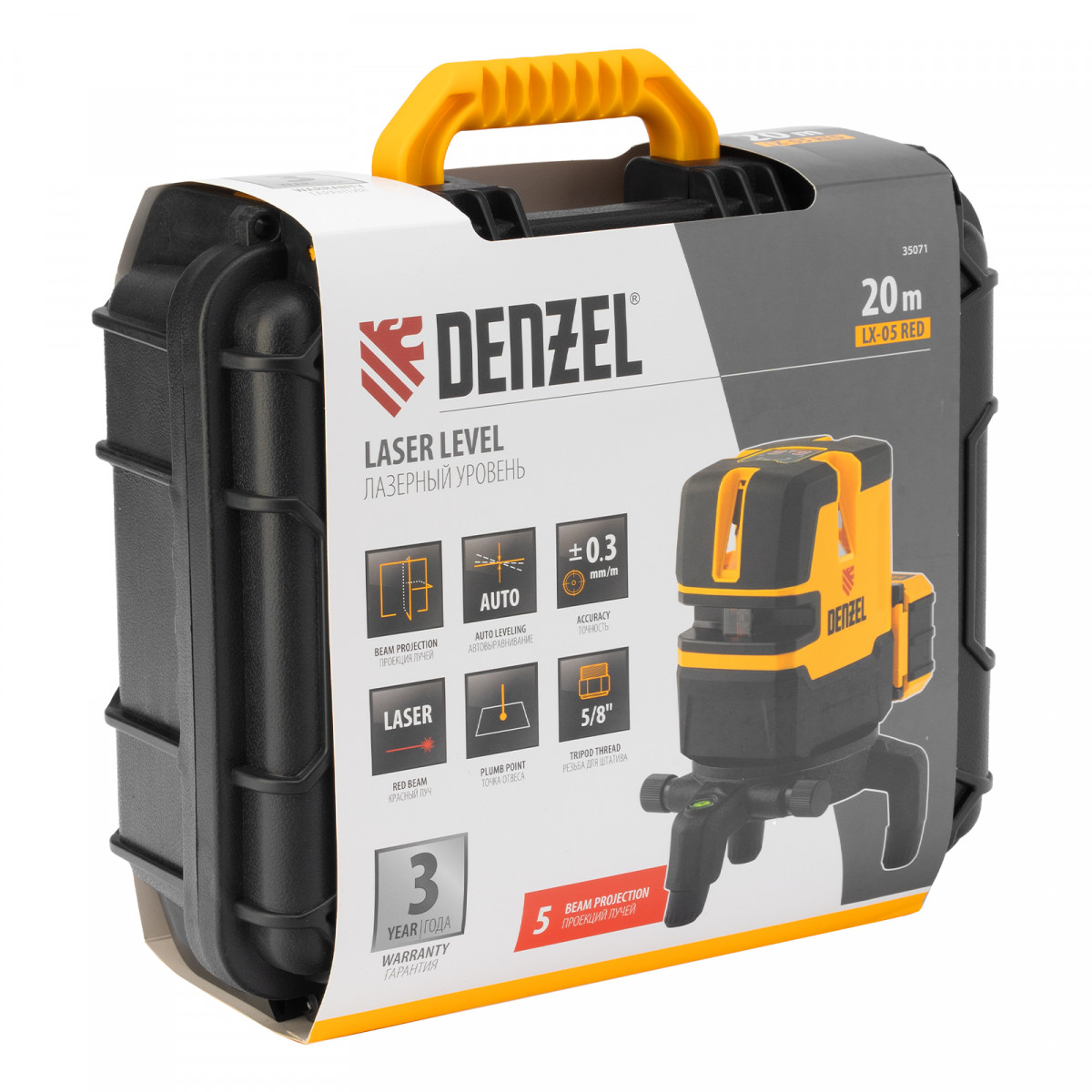 Лазерный уровень LX 05 Red, 20 м, 635 нм, аккумулятор Li 5200 mAh, резьба 5/8" Denzel