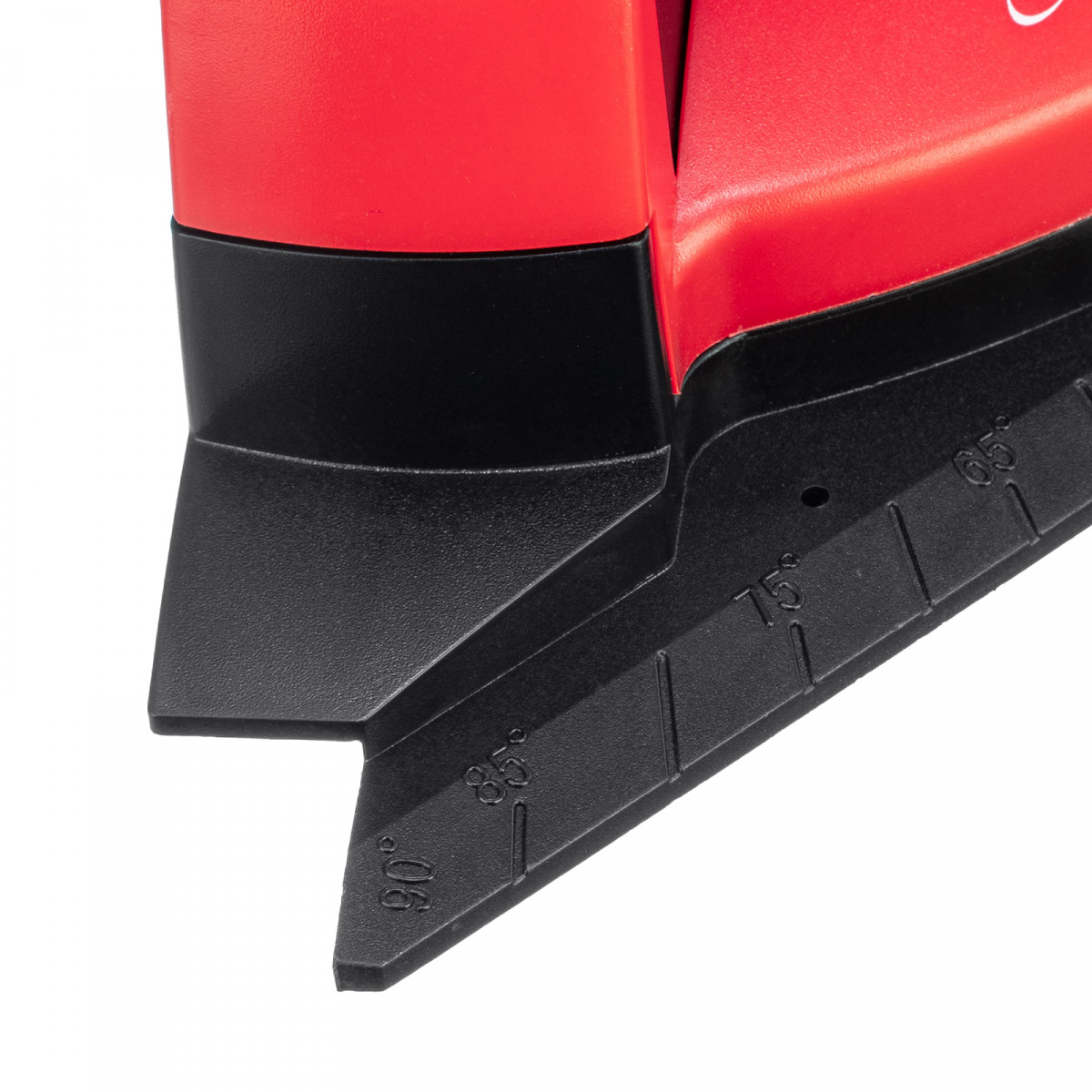 Лазерный уровень Matrix 35007 в форме угольника предназначен для разметки поверхностей по горизонтали, вертикали и диагонали. Проецирует 2 лазерные линии под углом 90 градусов на поверхность, параллельно которой он установлен. Угловая форма позволяет использовать инструмент для укладки покрытия на полу, например, ламината, паркета или плитки, или для отделки стен, планировки розеток и выравнивания конструкций.