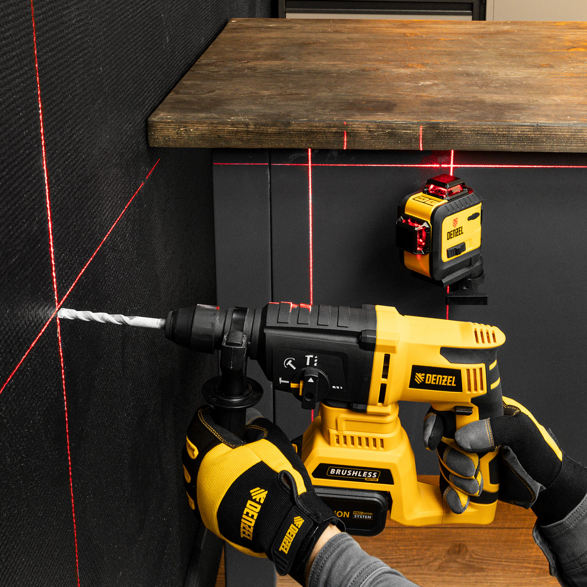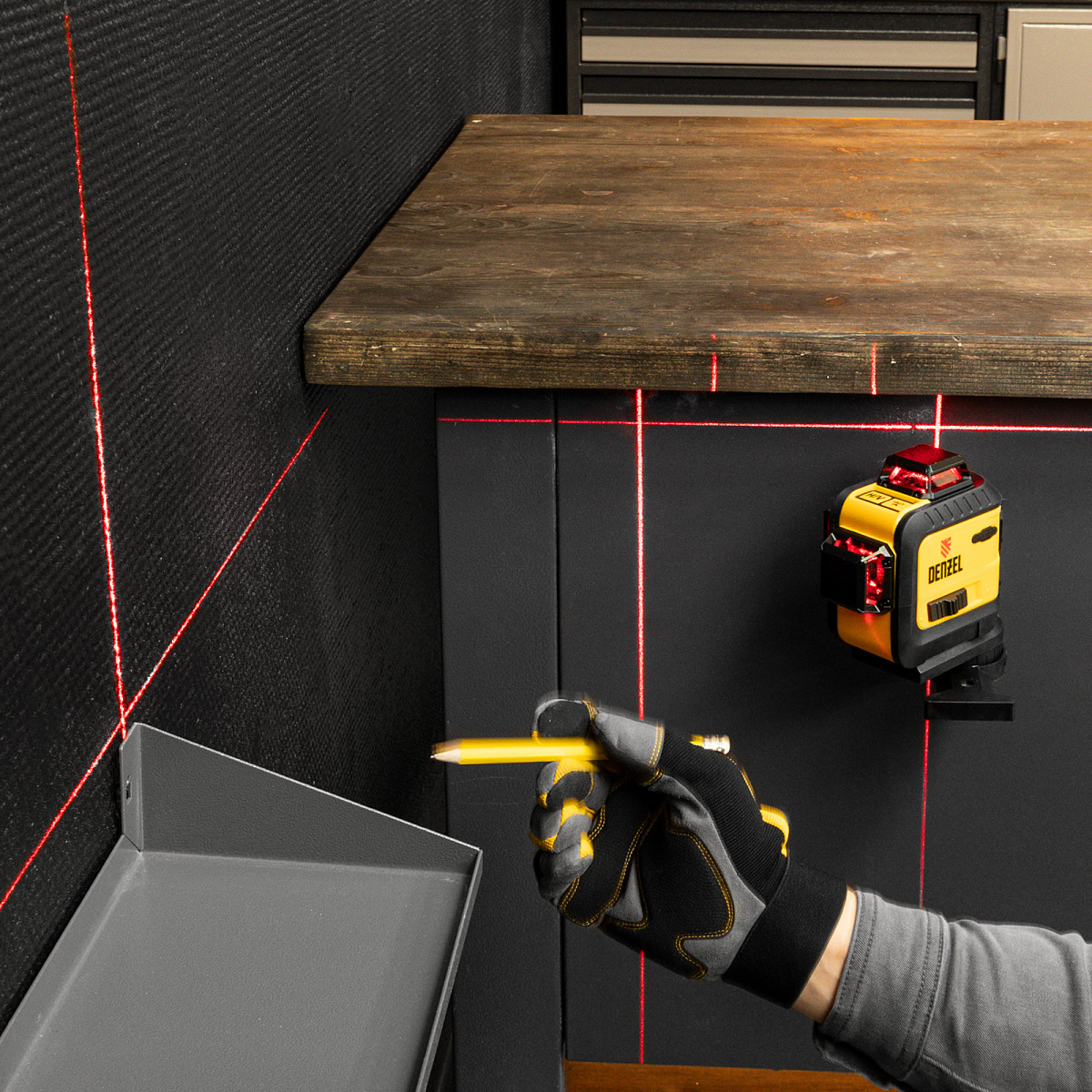 - Оповещение о превышении угла наклона — в случае отклонения уровня более чем на 4° по горизонтали лазерные лучи начинают мигать.