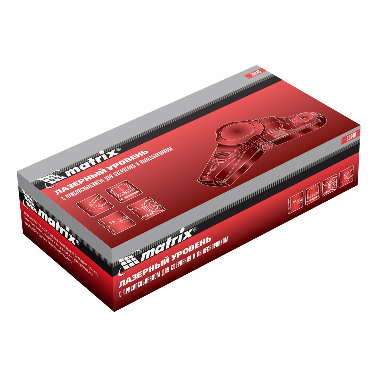 Лазерный уровень Matrix 35040 проецирует луч для точной разметки объектов, а также имеет приспособление для сверления и пылесборник. Значительно облегчает и ускоряет строительство, отделку и декорирование помещений, проведение монтажных работ, прокладку электро- и трубопровода. Дальность проецирования составляет 5 м, а погрешность — всего 0,1°.