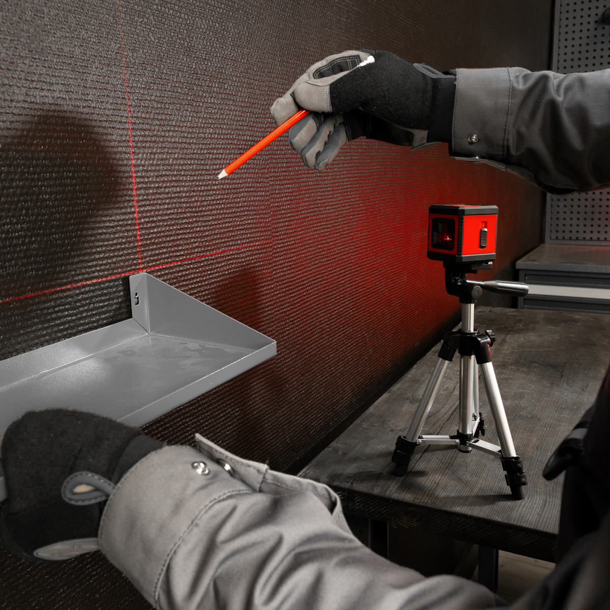 Лазерный уровень XQB RED Pro SET, 10 м, красный луч, батарейки, штатив MTX