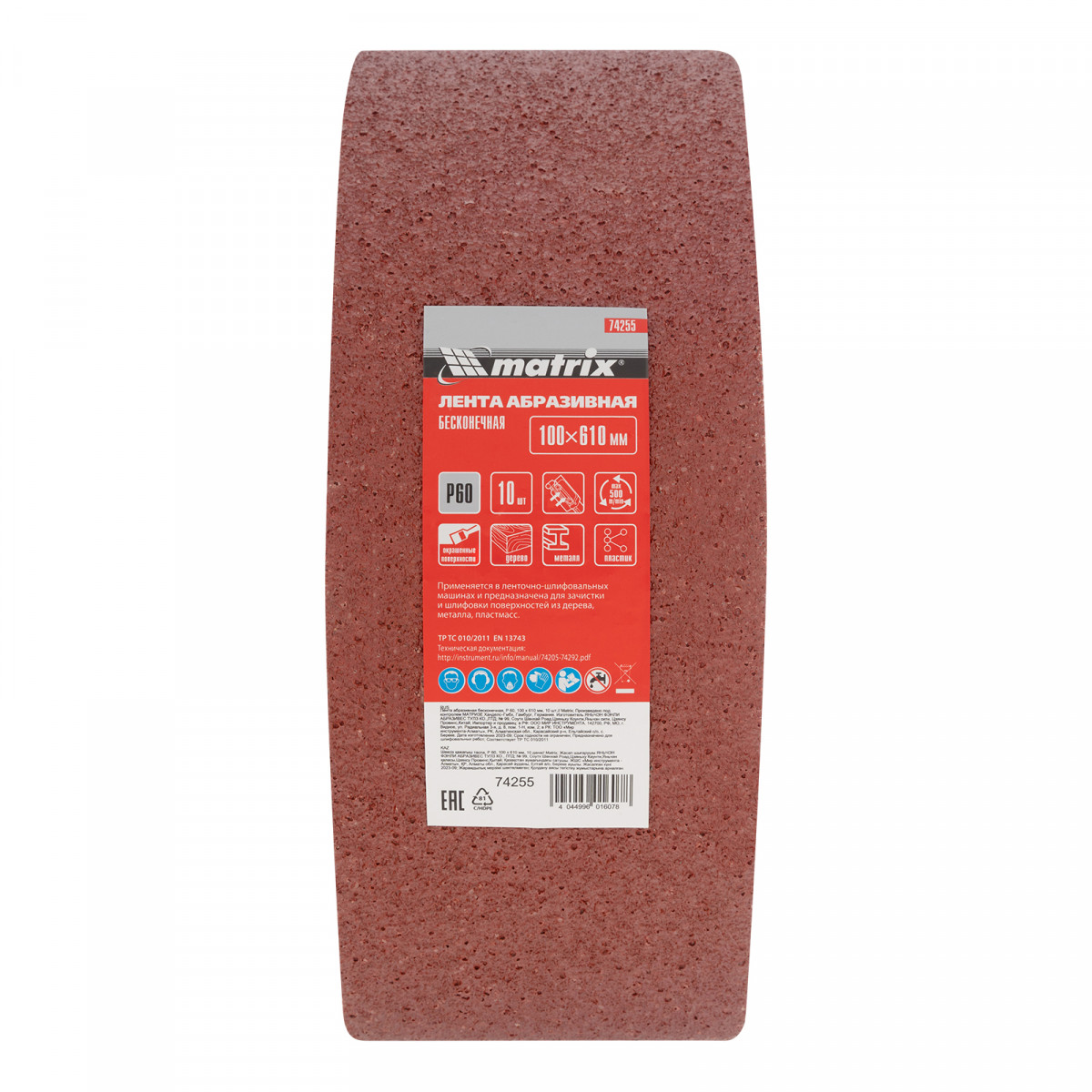 Лента абразивная бесконечная, P 60, 100 х 610 мм, 10 шт Matrix