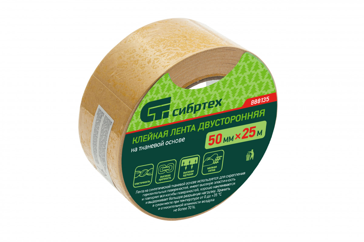 Лента клейкая двусторонняя, 50 мм х 25 м, на тканевой основе Сибртех