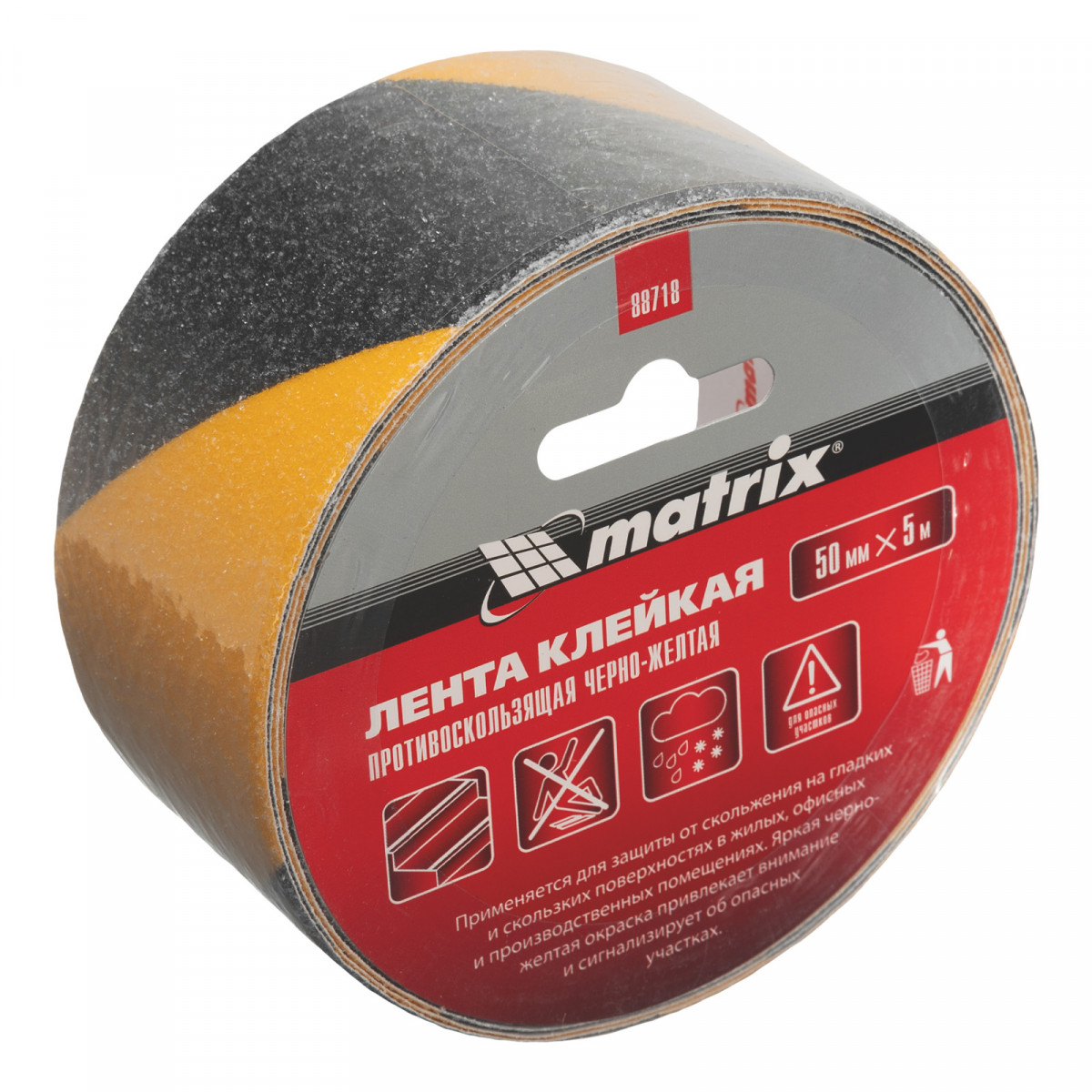 Лента клейкая противоскользящая, черно-желтая 50 мм x 5 м Matrix