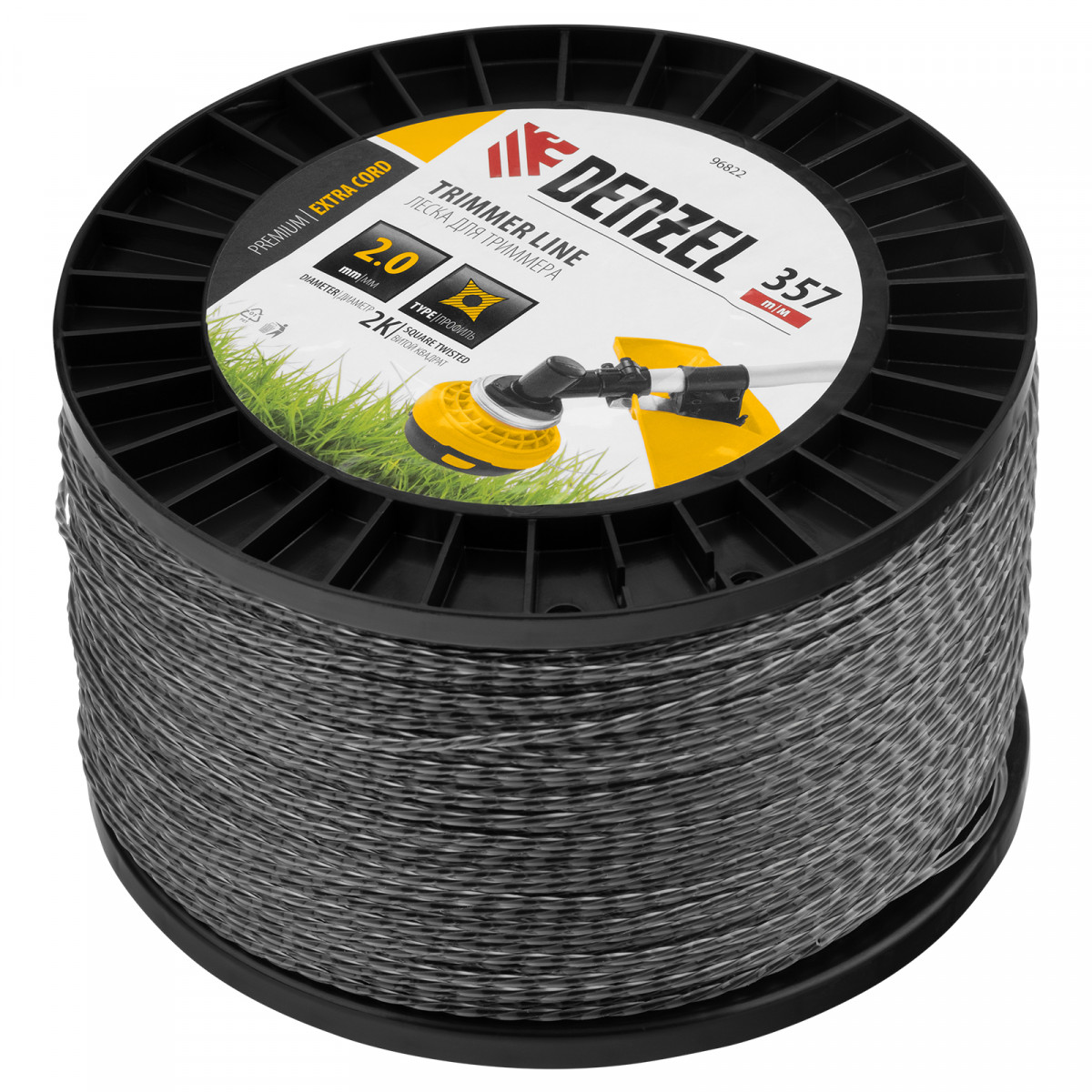 Леска для триммера двухкомпонентная витой квадрат, 2,0мм х 357м, на DIN катушке EXTRA CORD Denzel