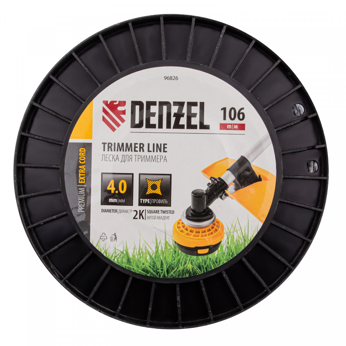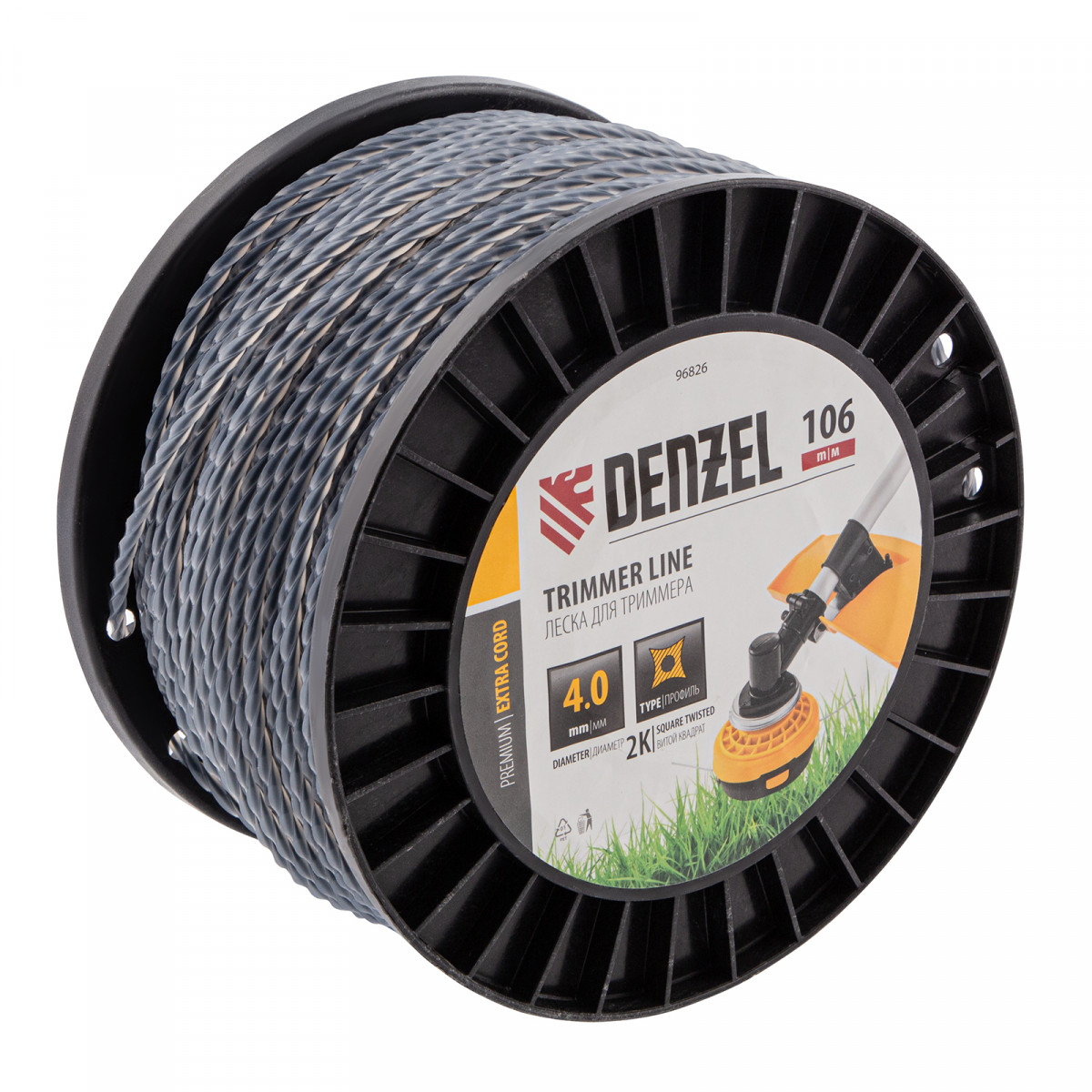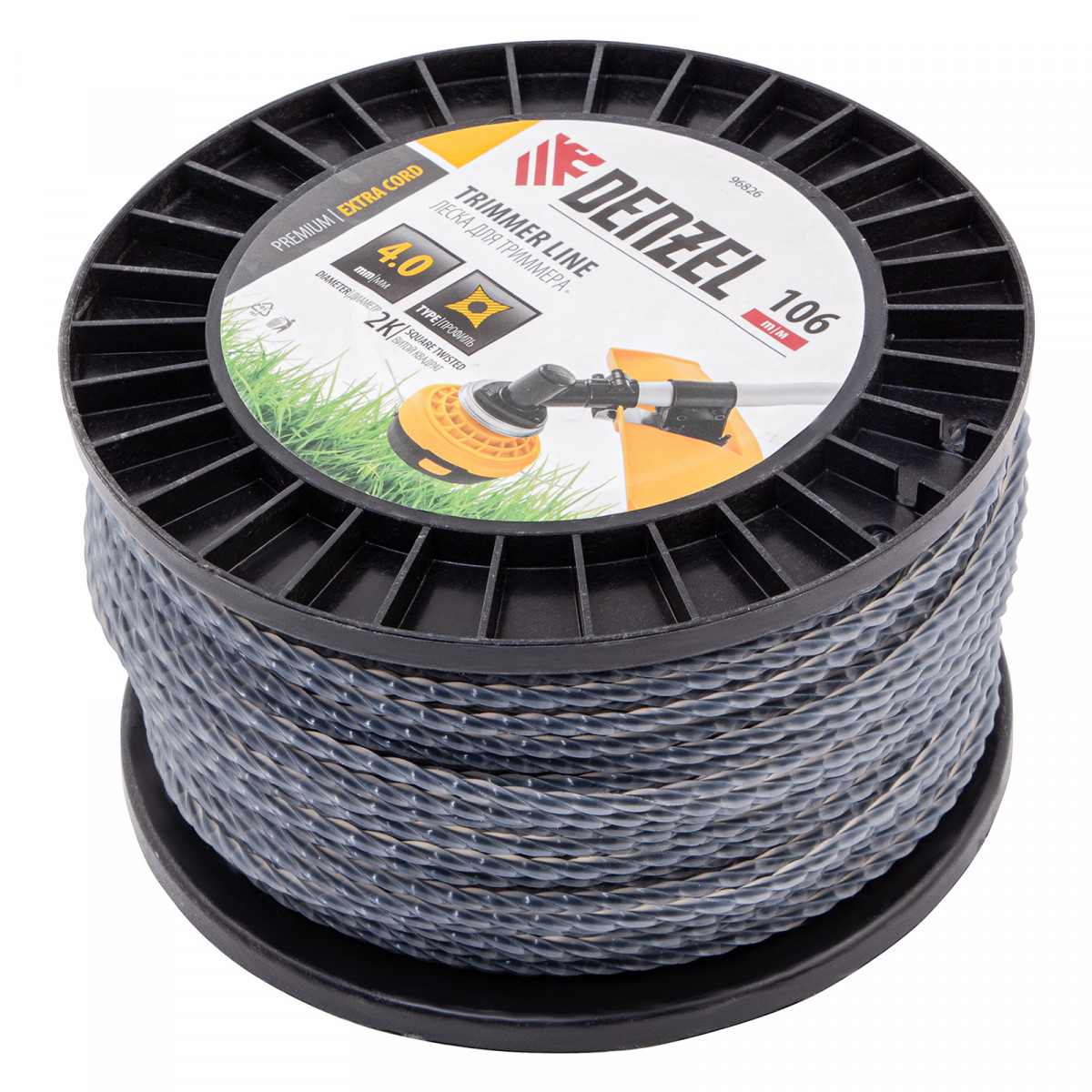 Леска для триммера двухкомпонентная витой квадрат, 4,0мм х 106м, на DIN катушке EXTRA CORD Denzel