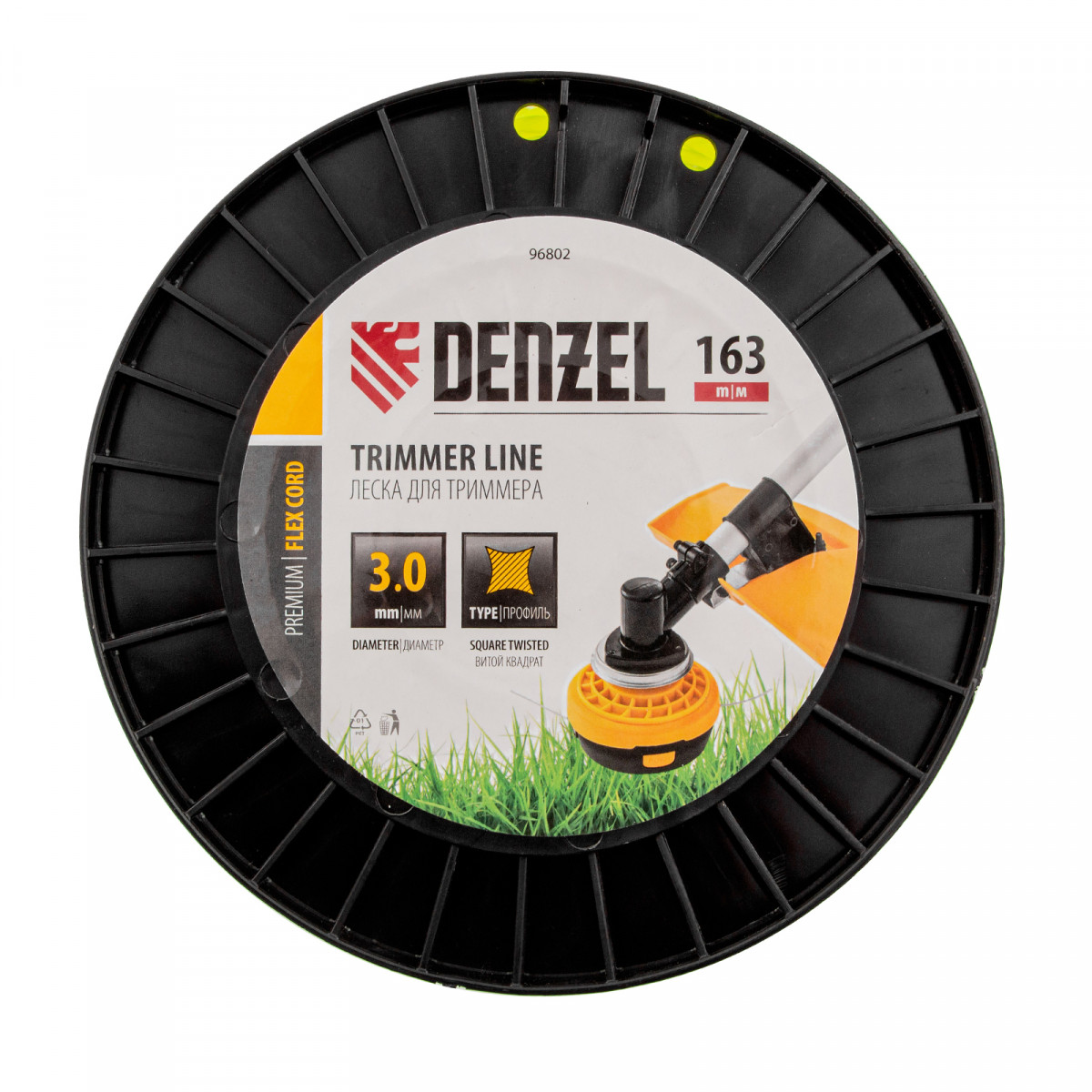 Леска для триммера Denzel FLEX CORD 96802 с сечением «витой квадрат», толщиной 3,0 мм и длиной 163 м, на DIN-катушке, предназначена для скашивания крупностеблевой растительности. Используется на бензиновых триммерах с объемом двигателя 25-52 см3 и электротриммерах мощностью от 1 до 1,5 кВт.