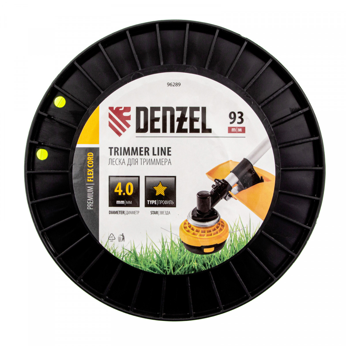 Леска Denzel FLEX CORD 96289 с сечением «звезда», диаметром 4,0 мм и длиной 93 м, на DIN-катушке, устанавливается на мощные бензиновые триммеры. Используется для ухода за газоном, скашивает даже растительность с жесткими и толстыми стеблями. Пригодится владельцам дачных участков, а также работникам коммунальных служб.
