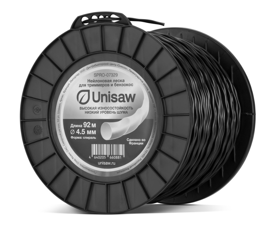 Леска триммерная 4.5мм 92м спираль Unisaw