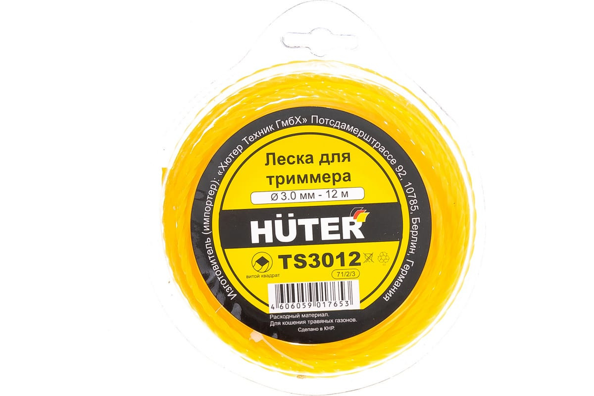 Леска для триммера HUTER обладает высокой прочностью и гибкостью. Режущий элемент триммера, правильный выбор ее толщины и формы влияет на скорость кошения и износ лески.Леска Huter TS3012 с сечение в форме витого квадрата, диаметр 3 мм, длина 12 м. Подходит для триммеров:GET-LS45,
