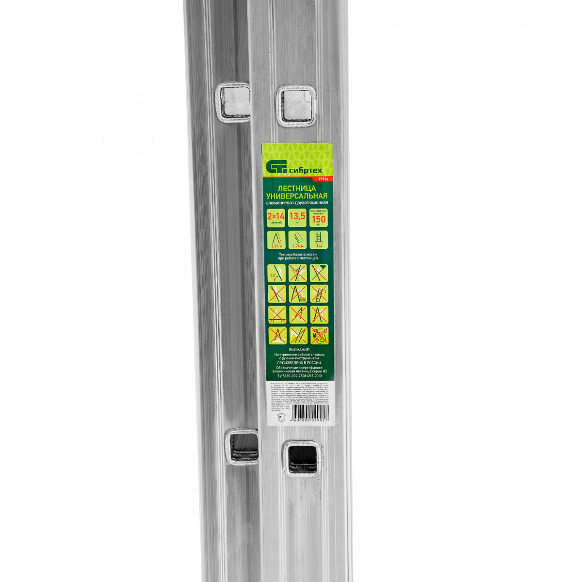 Алюминиевая двухсекционная лестница Сибртех 97914 состоит из 2 секций по 14 ступеней каждая. Легкая и прочная, она используется в качестве двухсторонней стремянки, предназначена для бытового и полупрофессионального применения.