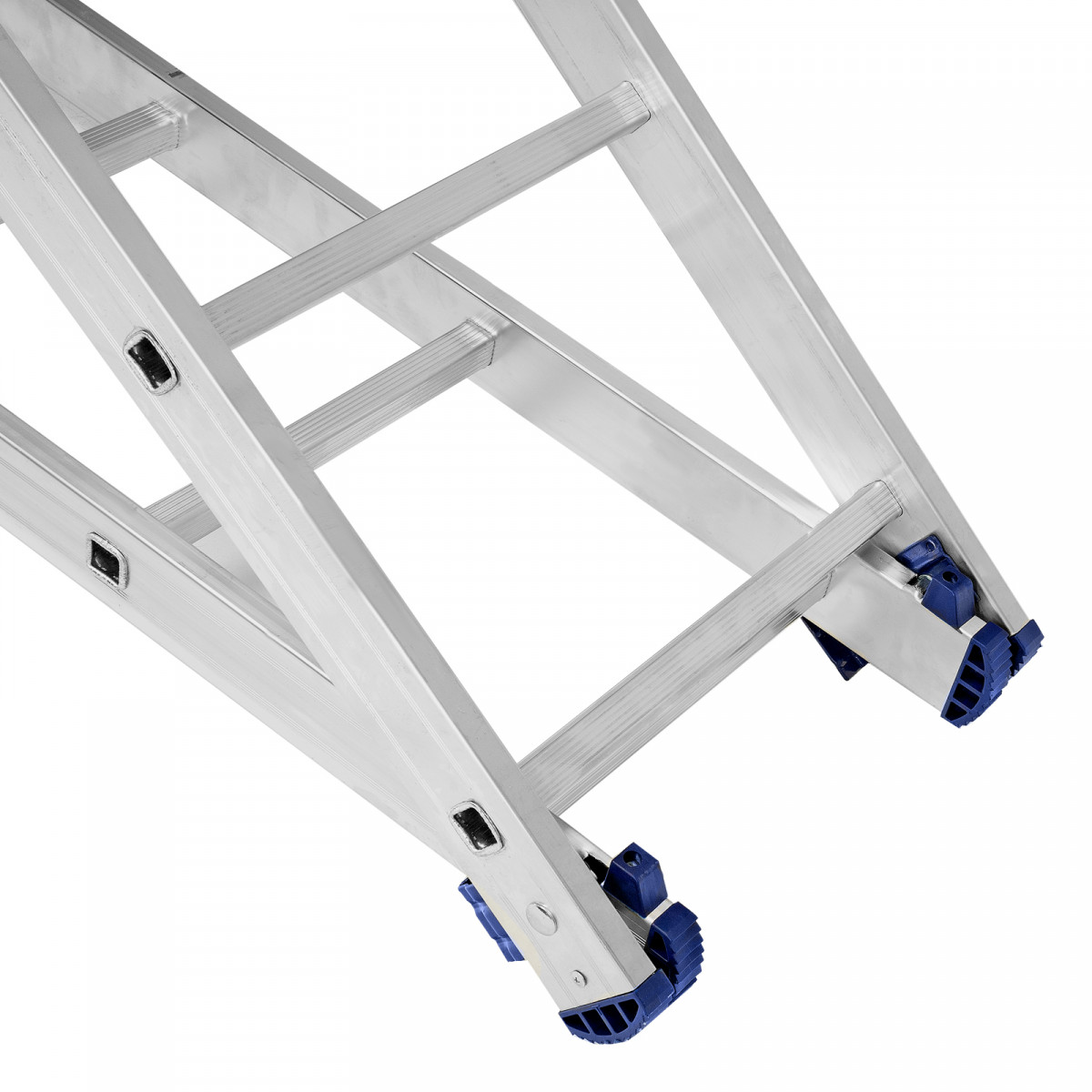 - 3 рабочих положения — стремянка, двухсторонняя стремянка, приставная лестница с одной или двумя секциями.