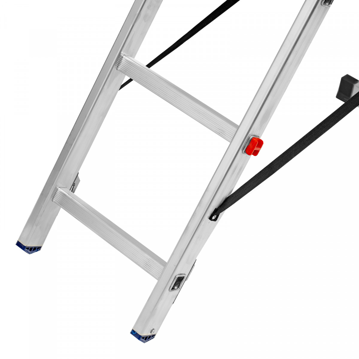 • Устойчивость — благодаря съемному стабилизатору лестница ровно стоит на горизонтальной поверхности.