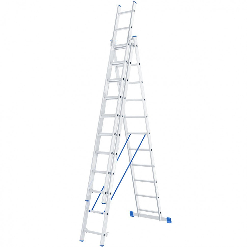 Лестница, 3 х 11 ступеней, алюминиевая, трехсекционная, Сибртех