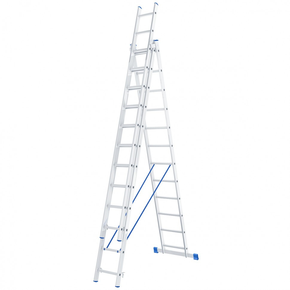 Лестница, 3 х 12 ступеней, алюминиевая, трехсекционная, Сибртех