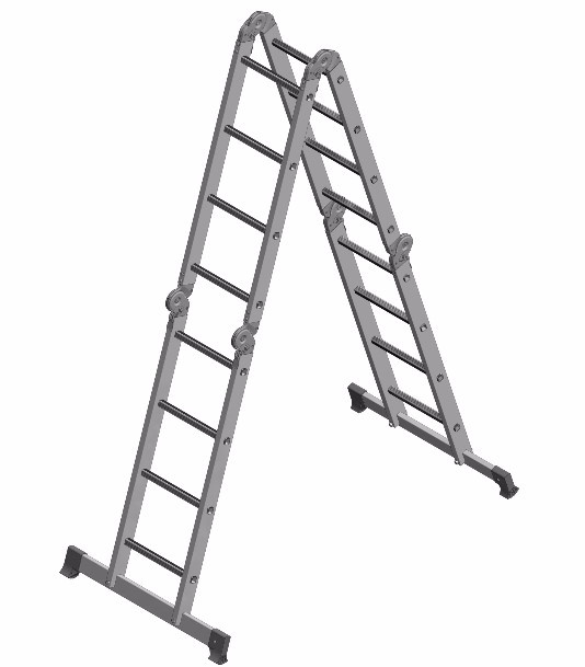 Четырехсекционная лестница-трансформер Новая Высота 4х3 1320403 отличается универсальностью, компактностью при хранении, устойчивостью. Легко преобразуется в помост-платформу, стремянку, приставную лестницу, лестницу с выносом.  Максимально допустимая нагрузка в положении помост 100 кг.