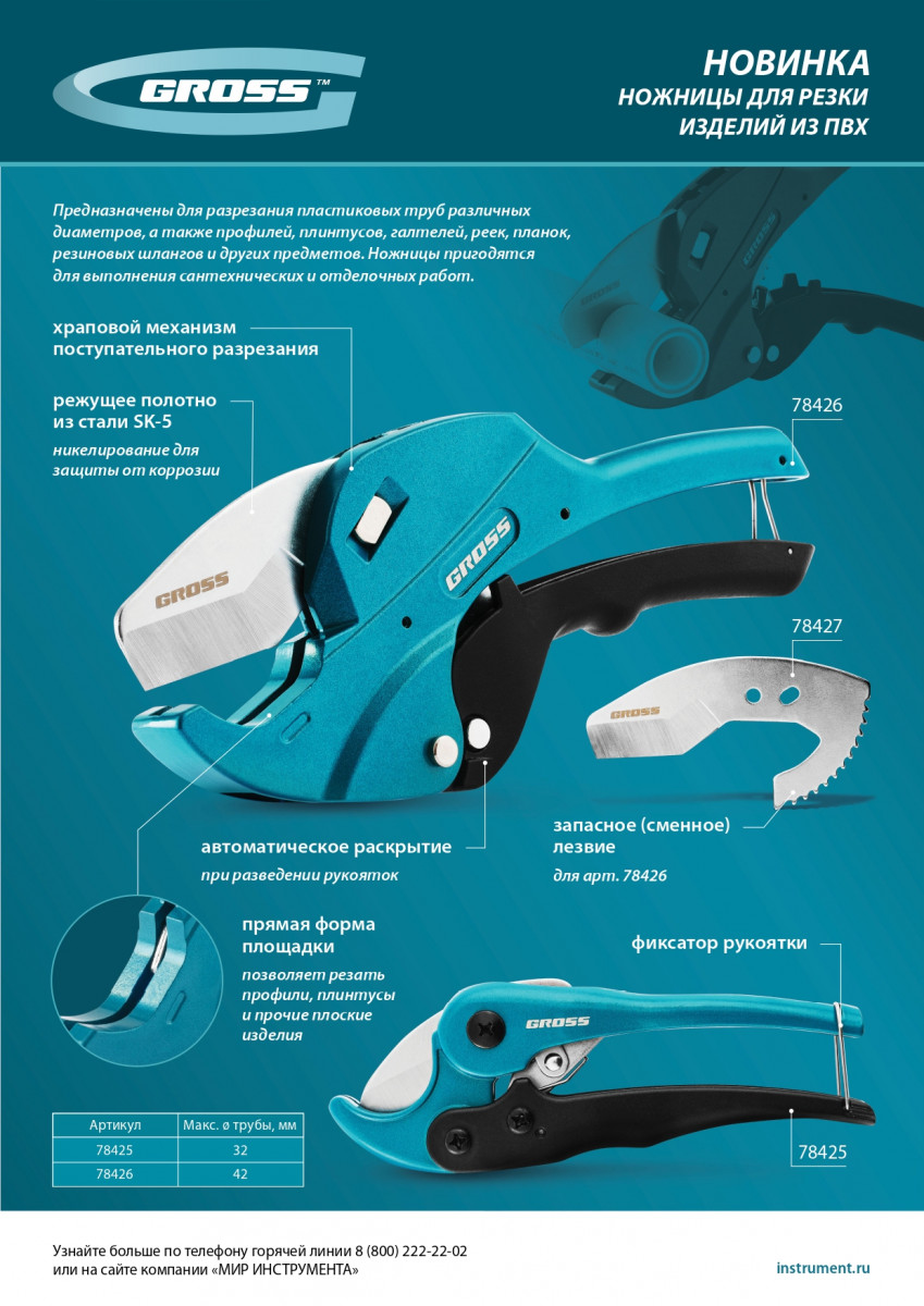 Лезвие Gross 78427 — сменный режущий элемент для ножниц по изделиям из ПВХ диаметром 42 мм, совместимый с арт. 78426. Предназначено для резки пластиковых труб, профилей, галтелей, плинтусов, реек, планок, резиновых шлангов и других предметов. Позволяет быстро восстановить работоспособность инструмента и избежать нежелательных перерывов в ходе сантехнических и отделочных работ.