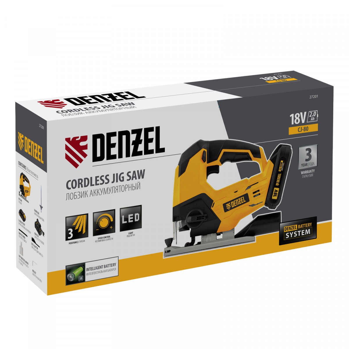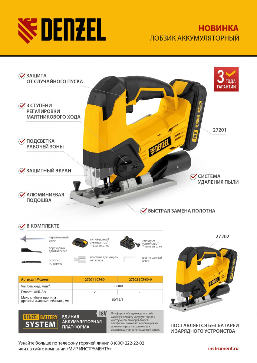 Лобзик аккумуляторный CJ-80, 18В Li-Ion Denzel