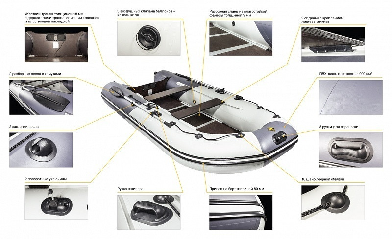 Лодка Ривьера 3600СК включила в себя все достоинства Ривьера 3200СК и Ривьера 2900СК, кроме того, получила увеличенные баллоны, увеличенную ширину и увеличенную максимальную мощность мотора. Также напольная слань имеет алюминиевую окантовку для удобства сборки, а также для защиты от разбухания фанеры из-за воды. В лодке имеется сливной клапан. И не менее важно то, что в лодке есть 5 ручек для удобства переноски.