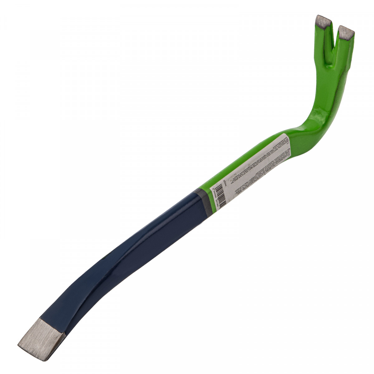 Лом-гвоздодер Сибртех 25244, 300 х 22 х 12 мм, позволяет удалять гвозди, а также срывать доски с пола, разбирать ящики, демонтировать заборы, вагонку со стен или шифер с крыши. Может служить рычагом для поднимания грузов, поскольку прямоугольно-овальный профиль значительно усиливает его на момент излома. Инструмент подходит для профессионального и бытового применения.