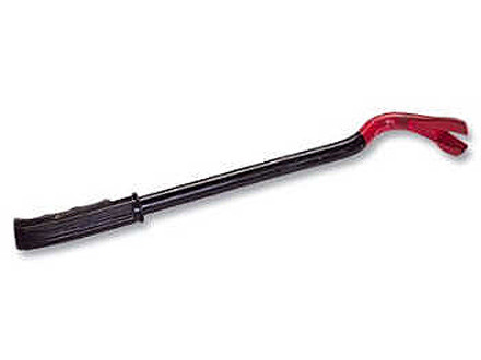 Гвоздодер изготовлен из арматурного прута. Сталь марки 20. Имеет загнутый рабочий профиль с клиновидной прорезью, предназначенный для удаления гвоздей разных размеров. Для удобства пользования ручка инструмента обрезинена.